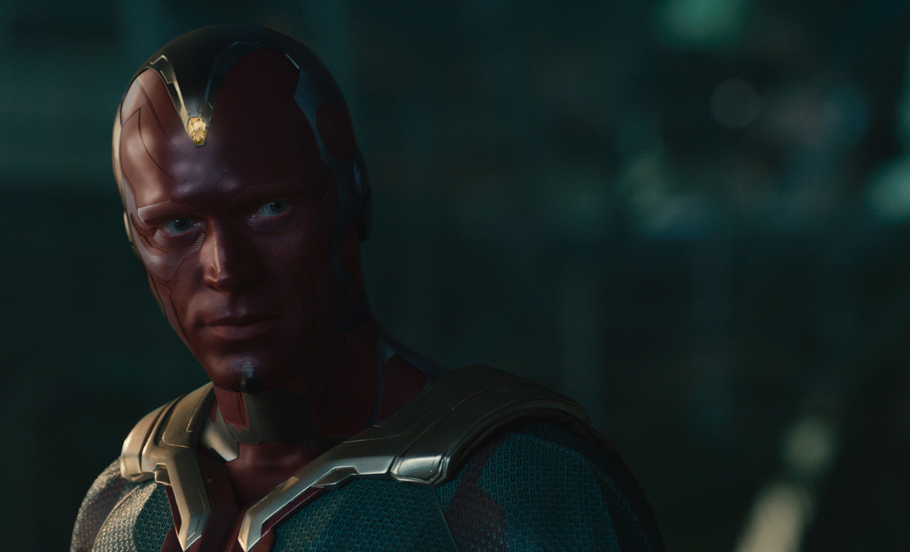 울트론이 만들려 했던 완벽한 육체에 자비스의 인공지능과 '마인드 스톤(로키의 창)'이 결합하여 '비전'이 탄생합니다. 그가 태어나자마자 묠니르를 가볍게 들어 올리는 장면은 그가 얼마나 고결하고 순수한 존재인지를 단적으로 보여줍니다. 기계이지만 인간보다 더 인간적인 비전은 울트론과 대척점에 서서 생명의 가치를 역설합니다.