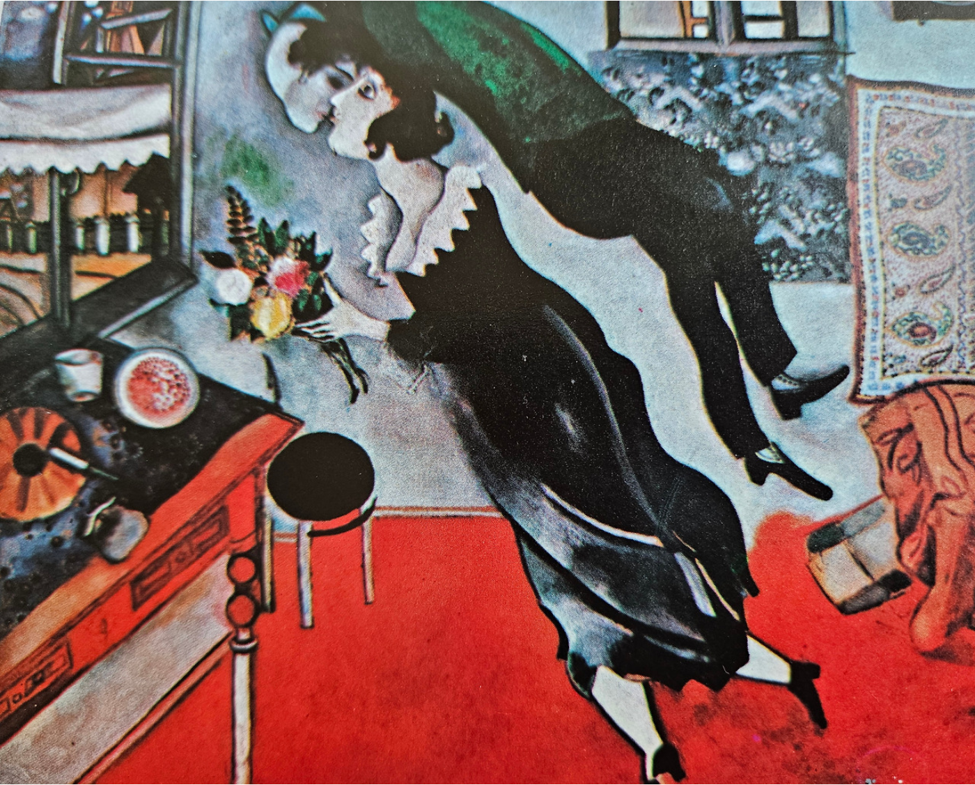 샤갈에게 '사랑'은 세상을 다른 색깔로 보이게 하고, 중력의 법칙마저 무시하게 만드는 마법이었습니다. 그는 훗날 "우리 인생에서 삶과 예술에 의미를 주는 단 하나의 색은 바로 사랑의 색이다"라는 명언을 남기기도 했습니다.