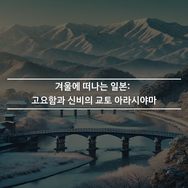 겨울의 교토 아라시야마는 고요하고 평화로운 매력을 지닌 곳으로, 자연과 문화를 동시에 만끽할 수 있습니다. 대나무숲의 신비로움, 도게츠교의 아름다운 설경, 따뜻한 온천에서의 휴식까지. 이번 겨울, 교토 아라시야마에서 잊지 못할 추억을 만들어 보세요.