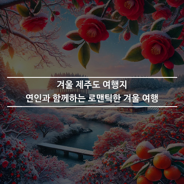 겨울 제주도는 고요하고 평화로운 매력을 지니고 있어, 연인과 함께라면 더욱 특별한 여행이 됩니다. 동백꽃, 귤 따기 체험, 겨울 바다 등 다양한 경험을 통해 잊지 못할 추억을 만들어보세요. 이번 겨울, 제주도로 떠나 여유와 낭만을 만끽해 보세요.
