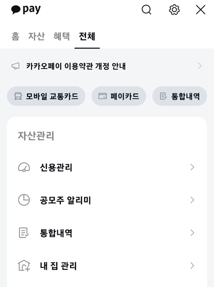 카카오페이 메뉴로 접속하면 제일 상단에 모바일 교통카드라는 태그가 보일텐데요.