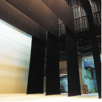 극장마다 고유의 문양이나 그림이 그려져 있는 경우가 많다. 전환 소음과 작업 불빛이 새어 나가지 못하도록 두껍고 무거운 재질로 만들어진다.