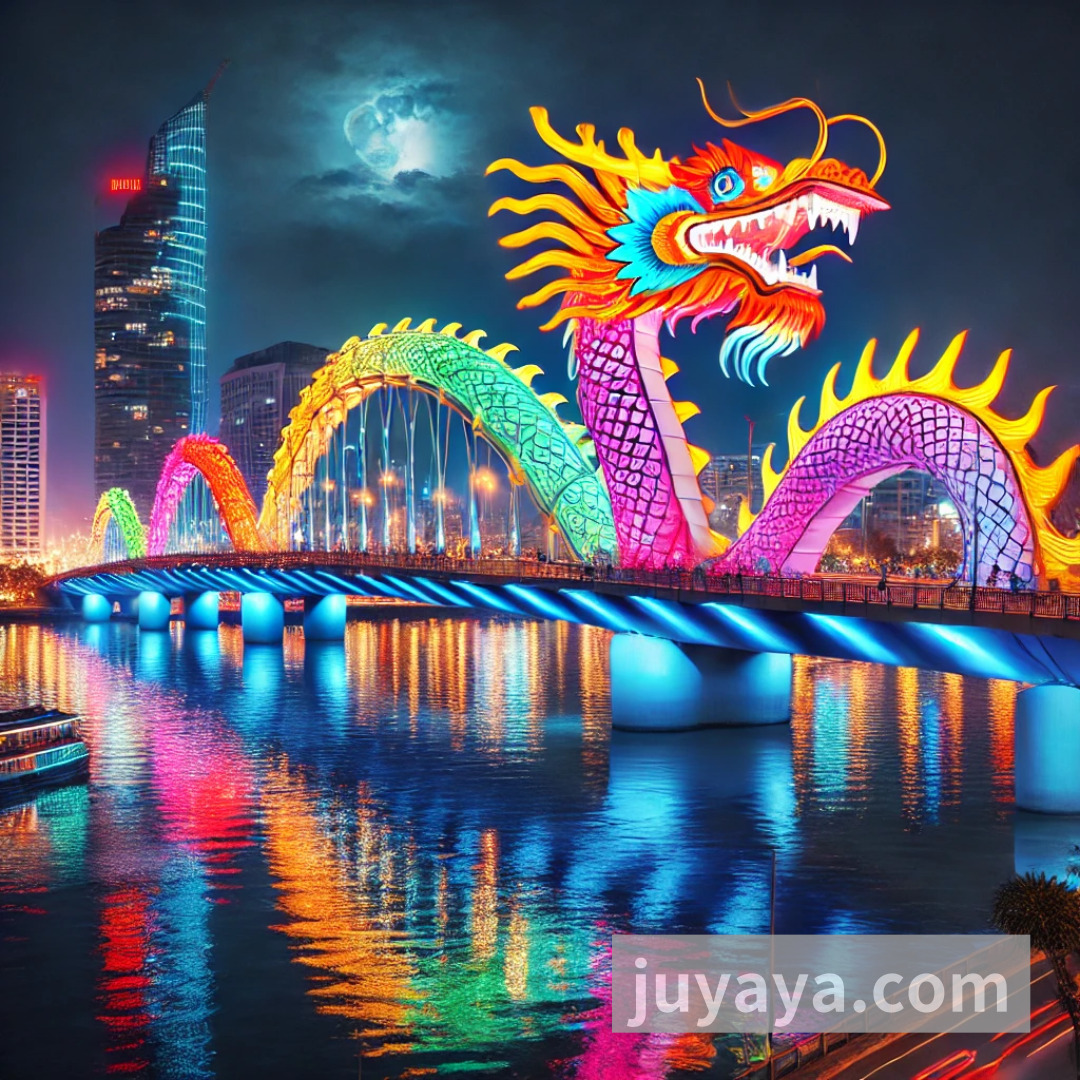 다낭의 야경을 대표하는 용다리는 밤마다 펼쳐지는 화려한 조명과 용의 불쇼로 유명합니다. 다리 디자인은 전통적인 베트남 문화에서 영감을 받아 용이 하늘로 승천하는 모습을 형상화했습니다.