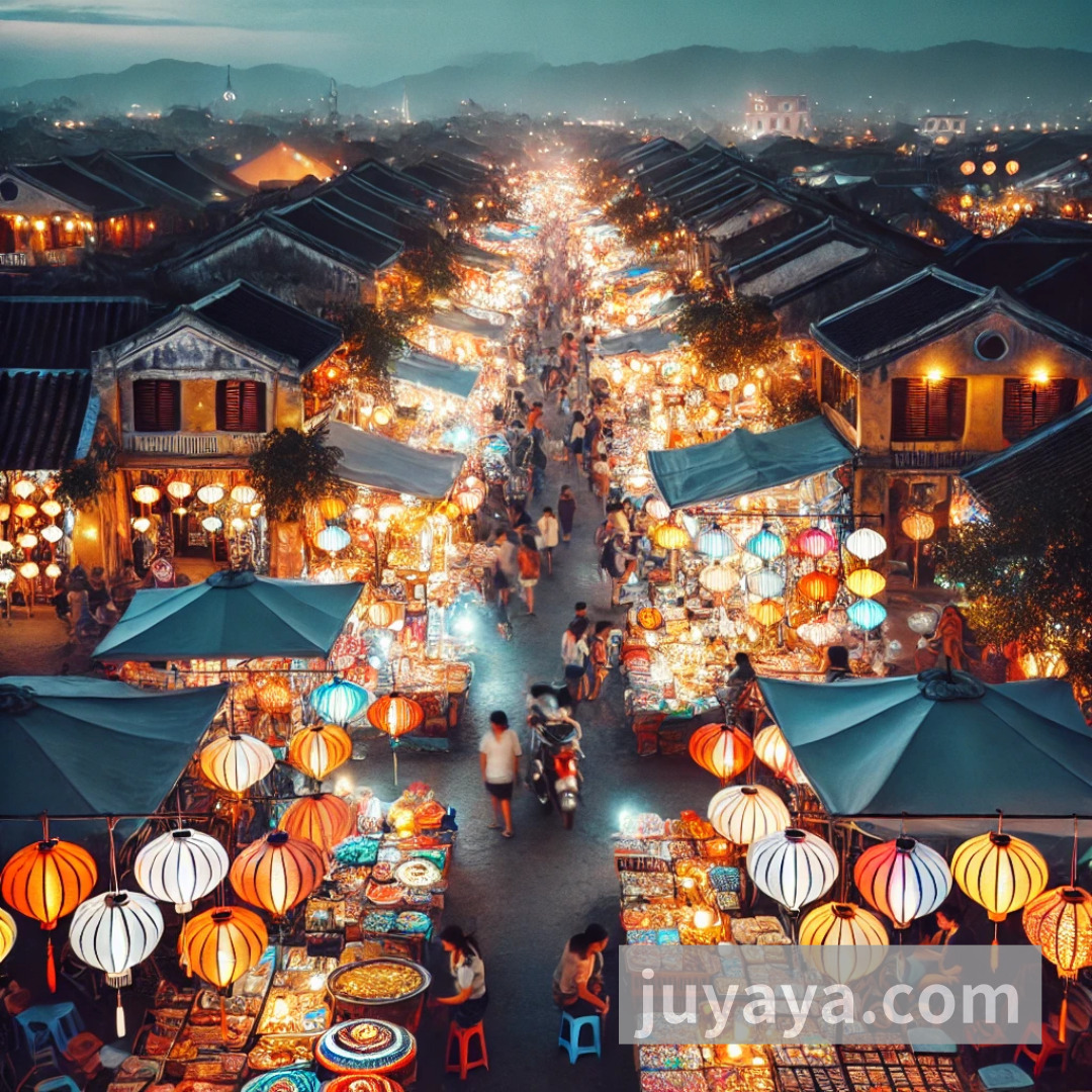 호이안 야시장은 저녁에 활기를 띠는 곳으로, 다양한 먹거리와 기념품을 즐길 수 있는 장소입니다. 특히 랜턴 상점이 줄지어 있어 아름다운 조명 속에서 쇼핑을 즐길 수 있습니다.