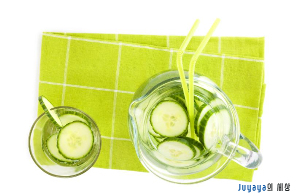 오이가 들어간 물은 몸에 수분을 공급하며, 공복감을 포만감으로 바꿔 준다고 합니다.