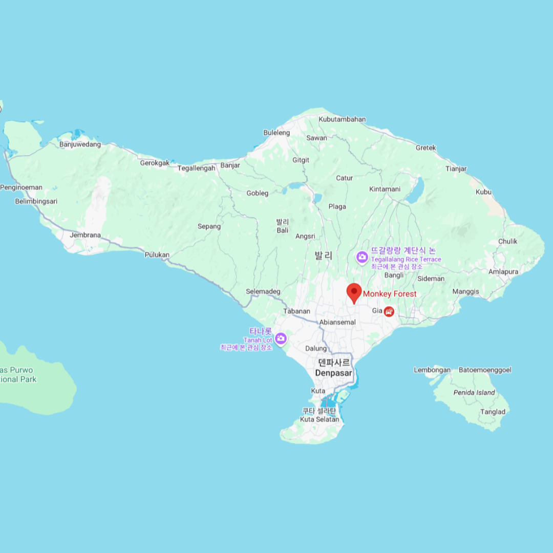 몽키 포레스트 | 08:30 ~ 18:00 | 약 80,000 IDR | 원숭이 관찰, 숲 탐방 | 우붓 남부 |