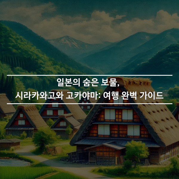 시라카와고와 고카야마는 전통적인 일본 문화를 온전히 느낄 수 있는 특별한 여행지입니다. 사계절 내내 아름다운 자연과 가쇼즈쿠리 가옥의 독특한 매력을 즐길 수 있는 이곳에서 잊지 못할 추억을 만들어보세요. 특히, 겨울 라이트업 행사는 놓치지 말아야 할 필수 코스입니다.
