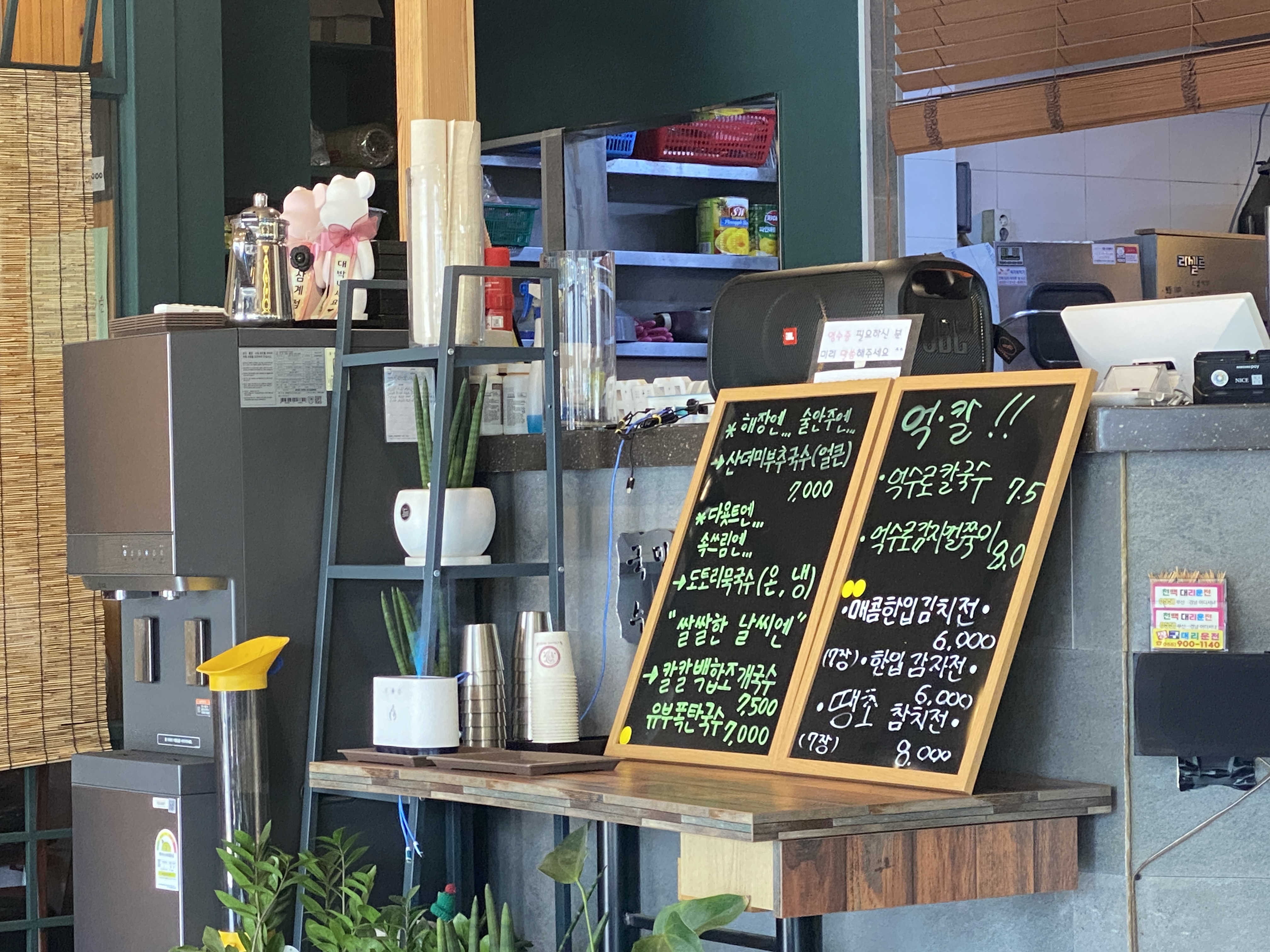 빗소리를 가만히 듣고 앉아 있으니 맛있게 구운 전과 함께 즐기는 막걸리가 생각나는 건 나만이 아닌 것 같다. 함께 온 일행들도 '막걸리 한 잔 하면 딱 좋겠다.'라는 이야기들을 나누고 있으니 말이다. 일행과의 이야기하는 즐거움에 빠져 가게 전경 사진을 찍지 못한 것이 아쉽다