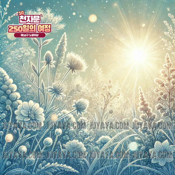 천자문 도전의 열 번째 구절에 오신 것을 환영합니다! 오늘 배울 구절은 “露結爲霜(노결위상)”으로, 이슬이 맺혀 서리가 된다는 뜻입니다. 이 구절은 자연의 섬세한 변화와 순환의 아름다움을