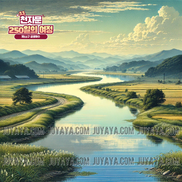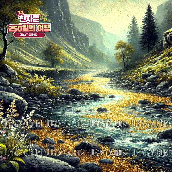천자문 도전의 열한 번째 구절에 오신 것을 환영합니다! 오늘 배울 구절은 “金生麗水(금생여수)”로, 금이 아름다운 강에서 난다는 뜻입니다. 이 구절은 자연의 풍요로움과 강의 귀한 가치를 상징합니다.