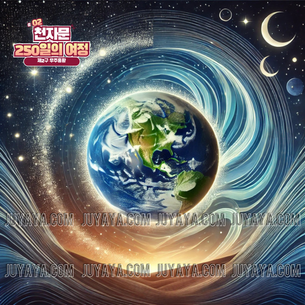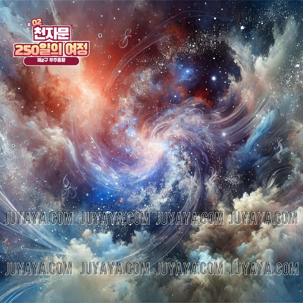 우주는 끝없이 넓은 공간과 시간을 가지고 있지만, 처음에는 정리되지 않은 혼돈의 상태였다는 의미를 전달합니다. 이는 세상이 처음 생겨난 때의 모습과 자연의 신비를 떠올리게 합니다.