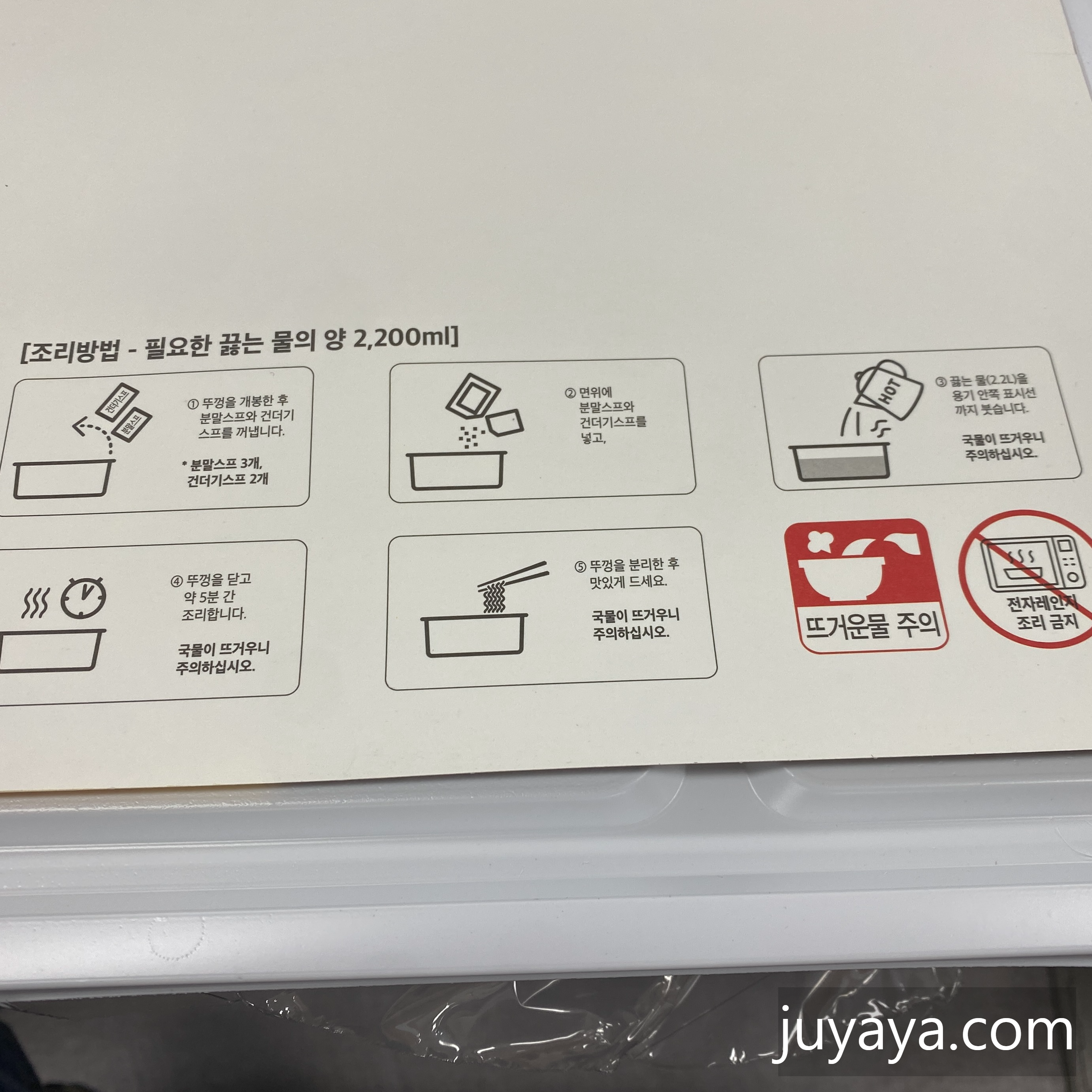 3. 특이사항: 면의 수량과 스프의 수량이 달라 하나씩 소분하여 먹을 수 없음