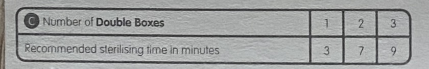 (2개들이 멸균기 상자 1개 3분, 2개 7분, 3개 9분)