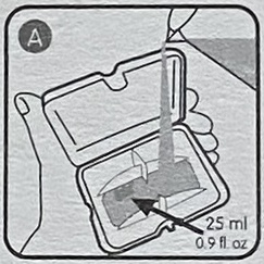 자가 살균 방법 사용 시 쪽쪽이, 멸균기 상자, 전자레인지(도파관 덮개와 회전판 포함)가 완전히 깨끗한지 확인하고, 먼지, 음식 찌꺼기, 지방 또는 기름이 튀지 않도록 하십시오. 그렇지 않으면 쪽쪽이와 멸균기 상자가 녹고 전자레인지가 꺼지거나 도파관 덮개가 타게 될 수 있습니다. - First, hold box and fill to the mark with 25 ml / 0.9 fl oz of water (fig. A)