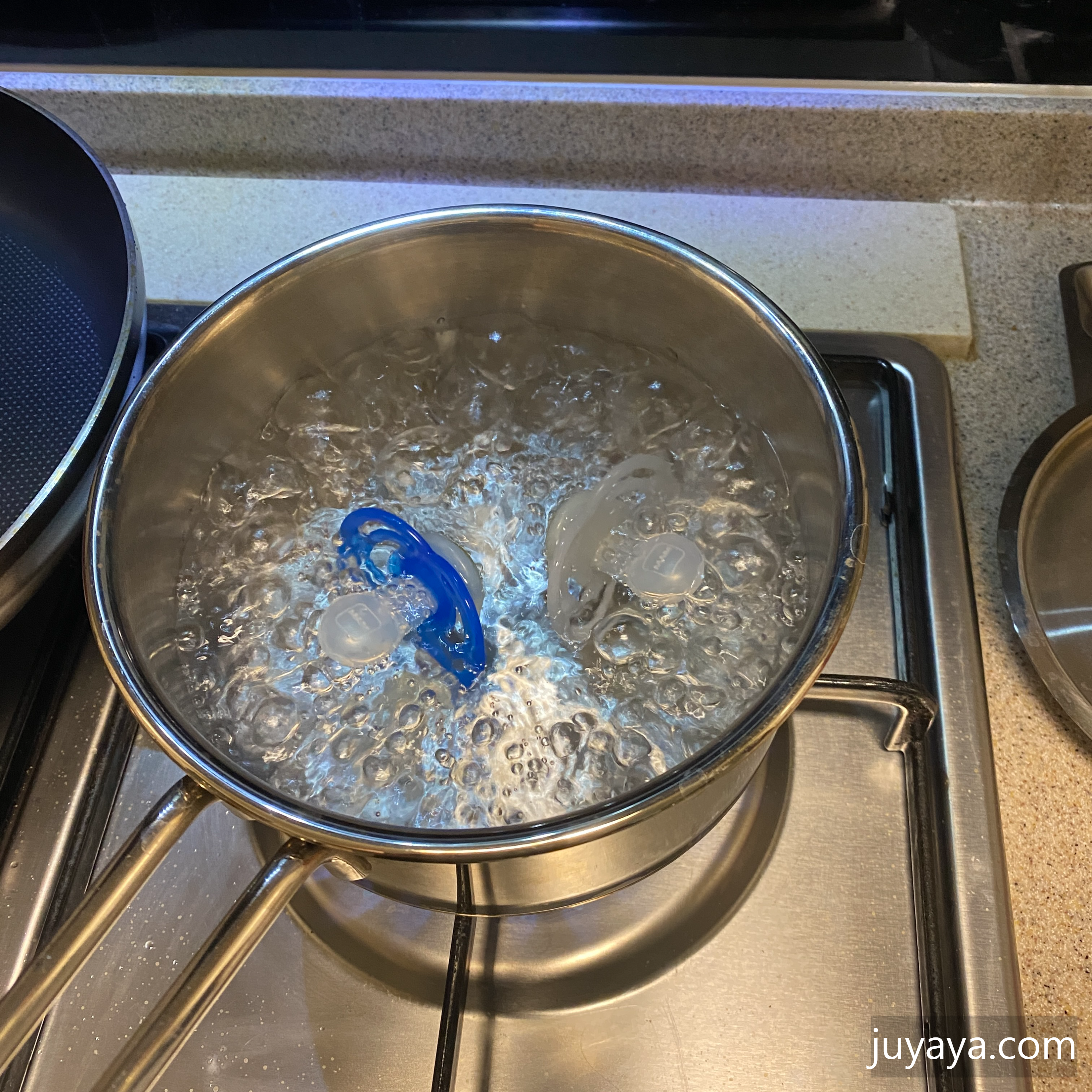 1) 처음 사용 전 5분간 열탕 소독(열탕 소독시 실리콘젖꼭지에 들어간 물은 짜서 버리기)